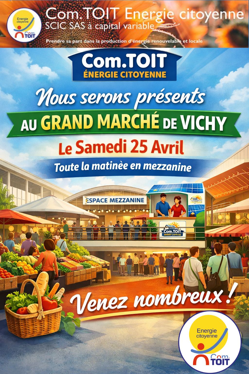 Com’TOIT énergie citoyenne est une SCIC SAS créée par des habitants de l’agglomération de Vichy Communauté. Elle a pour projet d’installer des panneaux solaires, dans un premier temps sur des toits communaux ou intercommunaux . Cette centrale solaire citoyenne et ses sociétaires entendent ainsi prendre leur part dans la production d’énergie renouvelable. Ce projet s’inscrit à son niveau dans la lutte contre le réchauffement climatique : réductions des dépenses d’énergie et développement des énergies renouvelables. Il partage la volonté de la communauté d’agglomération de faire un territoire à énergie positive (TEPos). Concrètement ce premier niveau de production d’électricité solaire compte produire l’équivalent de la consommation en électricité de 500 familles hors chauffage.