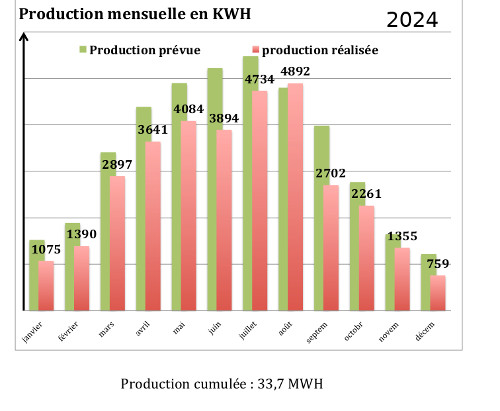 Production attendue en janvier 2025 : 890 Kwh - production réalisée : 1329 Kwh